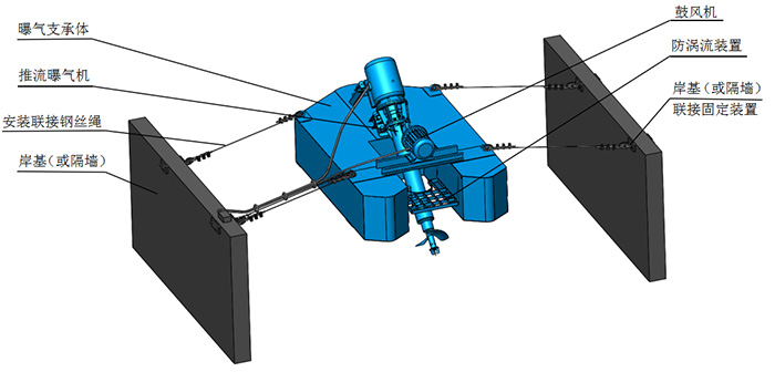 該設(shè)備作為于污水處理廠的新建曝氣設(shè)備選用,更可用于污水處理廠的升級改造,也可作為解決老污水處理廠污泥沉降問題的工具使用,運用十分廣泛。它的功率從4~45KW,直接由鋼絲繩固定于岸基或隔墻,無需改動固有設(shè)施,增減設(shè)備安裝方便,靈活度高。